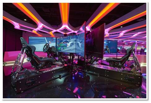 集飞行与驾车于一身的高端比赛模拟器,配备55英寸的超大挡风玻璃。想要飞行或是驾车?随时任意切换。
